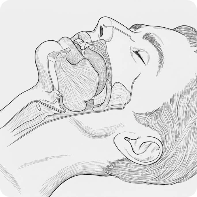 In central sleep apnea, this control is disrupted: the brain temporarily fails to send sufficient signals to the breathing muscles, causing breathing pauses. The tongue, palate, and throat muscles function normally in principle. The problem lies instead in the neurological regulation of breathing.